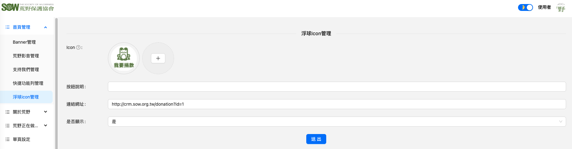 步驟4:設定此icon前台是否顯示,設定完成後,點選送出即可。