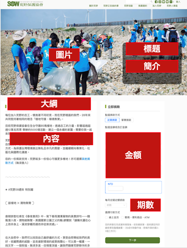 | 大綱 | 設定該筆捐款方案的大綱文字。 |