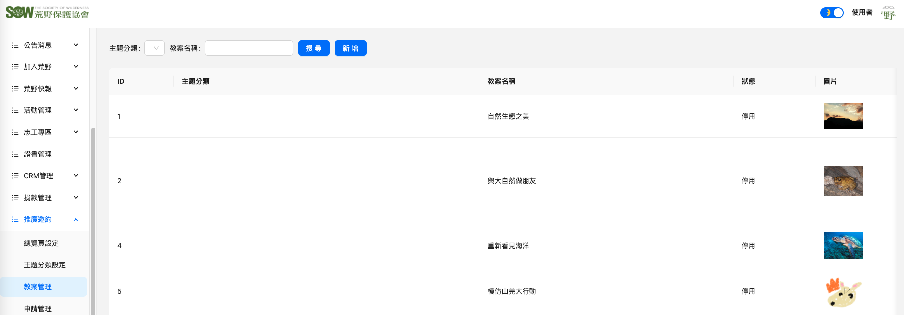 管理者可在本功能進行『推廣邀約』的教案管理。