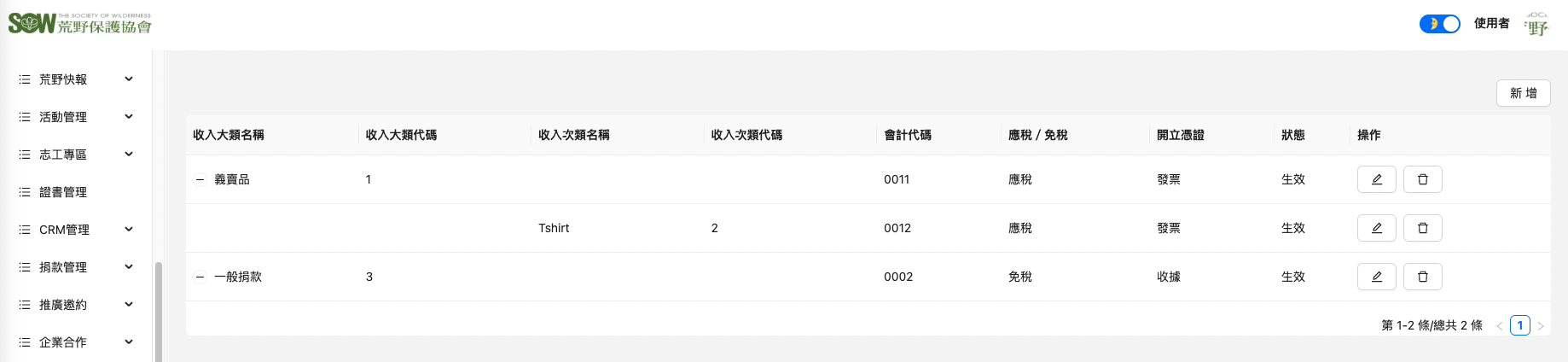 - 點選確認後系統會檢核會計代碼是否有重複,若無則成功新增,系統同步自動給代碼(2 碼)。