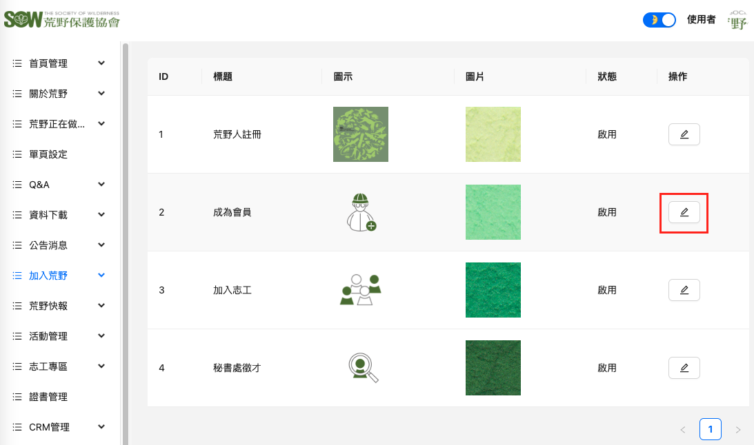 | 狀態 | 設定該區塊是否顯示於前台。 |